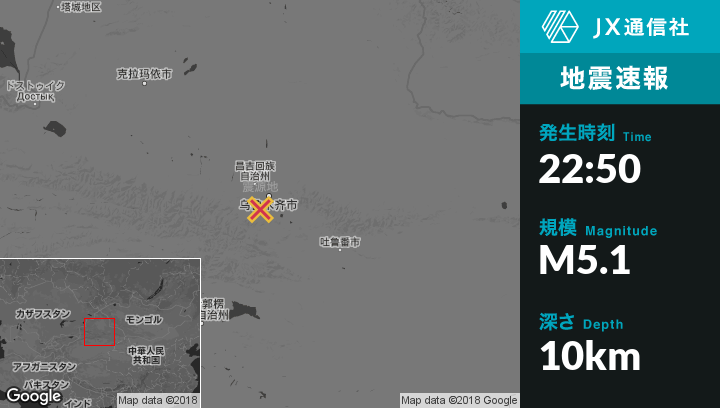 | 震源地 | 中国のUrunchiから南西18kmの地点 |