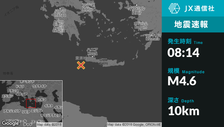 | 震源地 | ギリシャのPalaiochoraから西南西45kmの地点 |