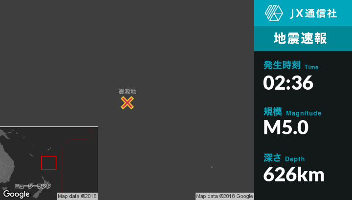 1月26日 02:36頃、ニュージーランドのRaoul Islandから北西479kmの地点でM5.0の地震がありました。