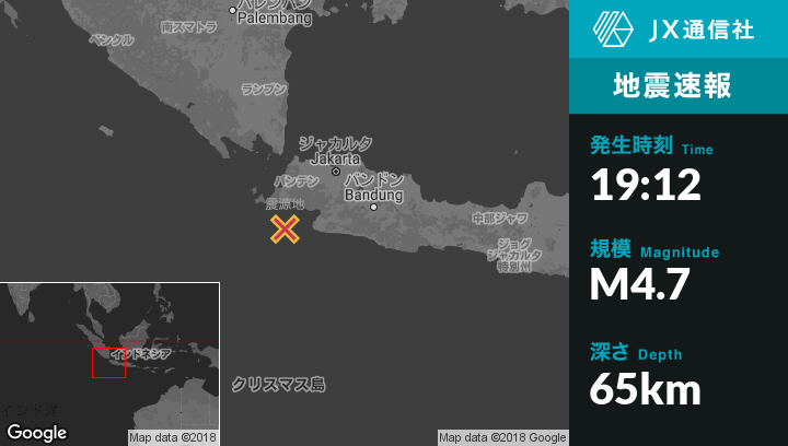 | 震源地 | インドネシアのBinuangeunから南45kmの地点 |