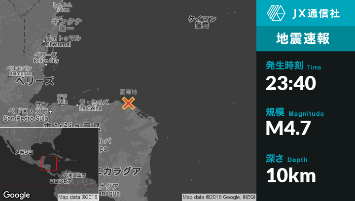| 震源地 | ホンジュラスのBrus Lagunaから北北西27kmの地点 |