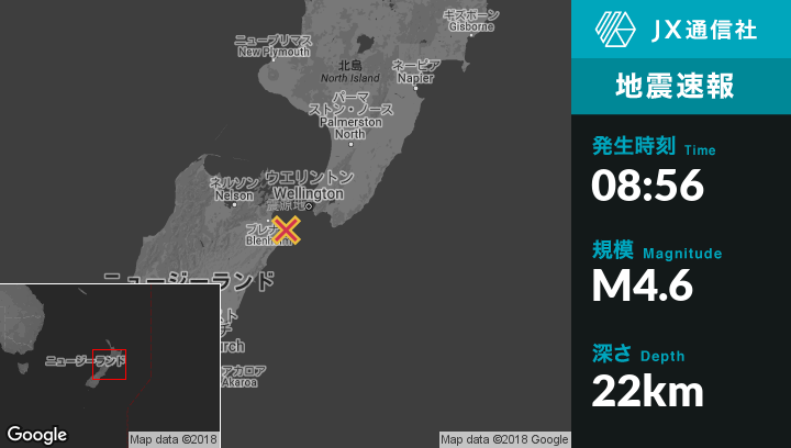 | 震源地 | ニュージーランドのBlenheimから東30kmの地点 |
