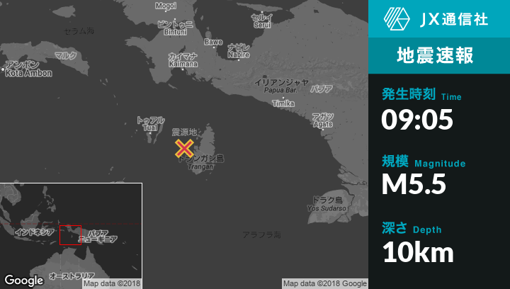 | 震源地 | インドネシアのDoboから西南西52kmの地点 |