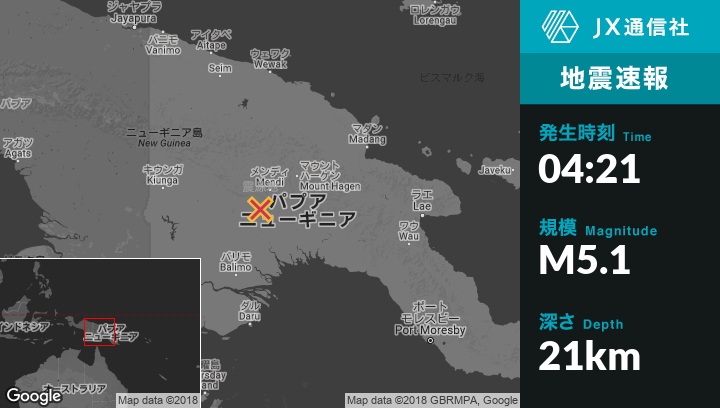 | 震源地 | パプアニューギニアのMendiから南西41kmの地点 |