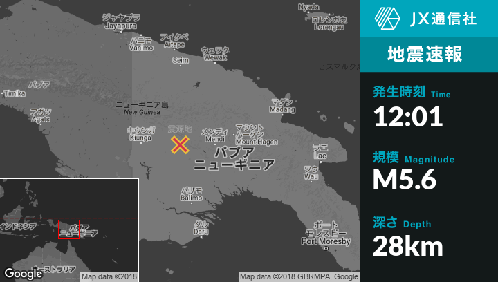 | 震源地 | パプアニューギニアのPorgeraから南西98kmの地点 |