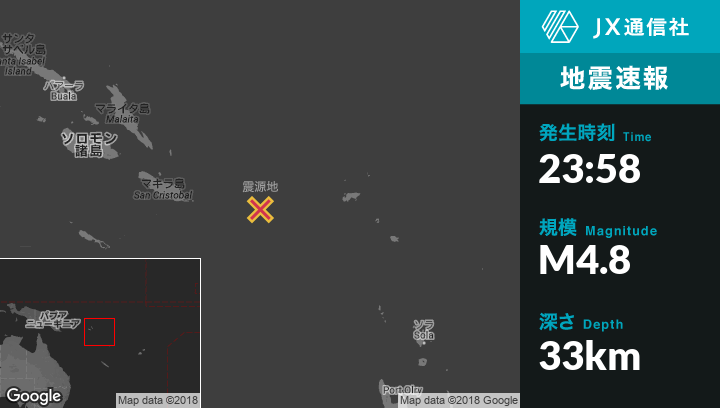 3月03日 23:58頃、ソロモン諸島のLataから西208kmの地点でM4.8の地震がありました。