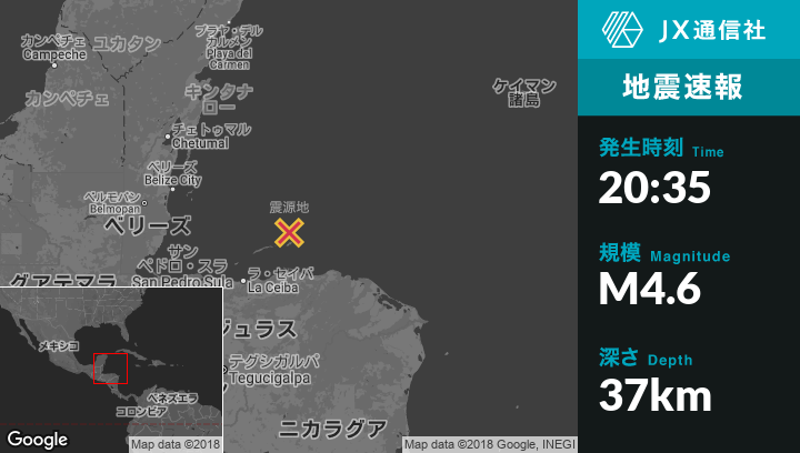 | 震源地 | ホンジュラスのSavannah Bightから北39kmの地点 |