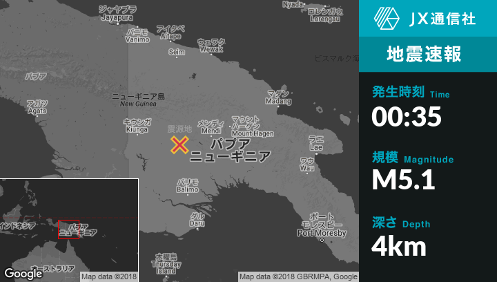 | 震源地 | パプアニューギニアのMendiから西112kmの地点 |