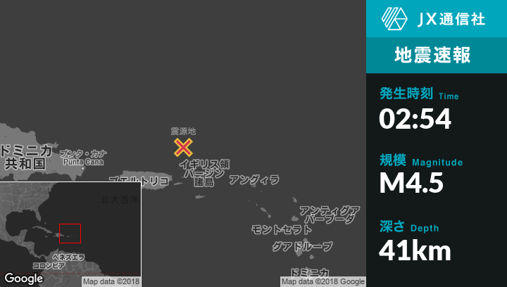 3月07日 02:54頃、プエルトリコのCulebraから北111kmの地点でM4.5の地震がありました。