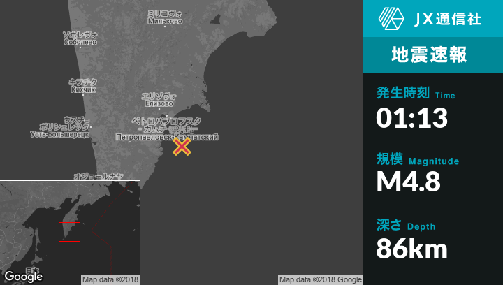 | 震源地 | ロシアのPetropavlovsk-Kamchatskiyから南南東67kmの地点 |