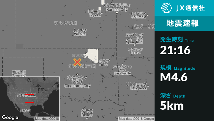| 震源地 | オクラホマ州のPerryから西21kmの地点 |