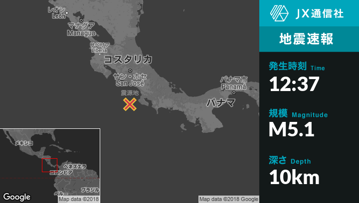 | 震源地 | コスタリカのCiudad Cortesから西南西77kmの地点 |