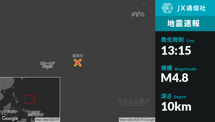 | 震源地 | ミクロネシアのFaisから北北西38kmの地点 |
