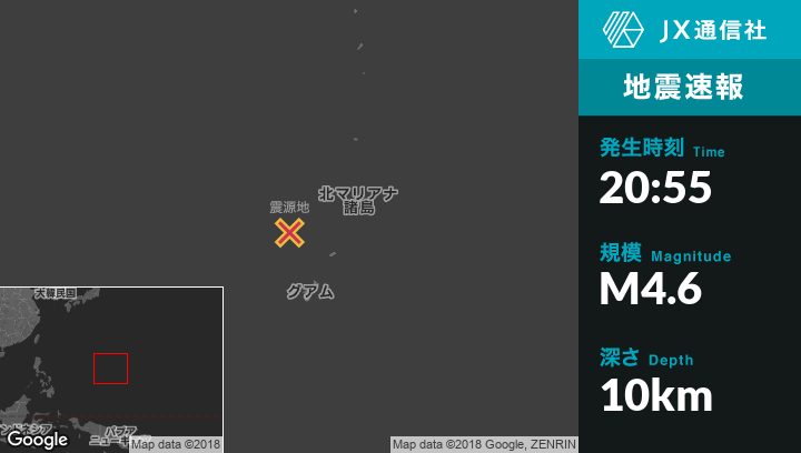 | 震源地 | 北マリアナ諸島のRotaから西北西109kmの地点 |