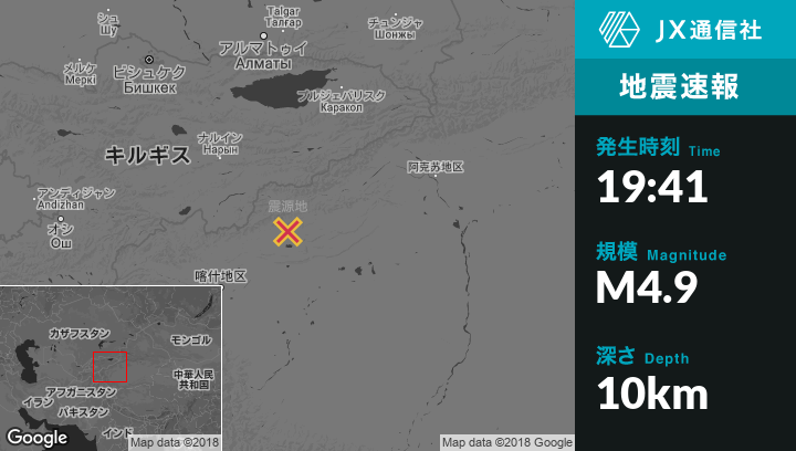 | 震源地 | 中国のArzakから北東131kmの地点 |