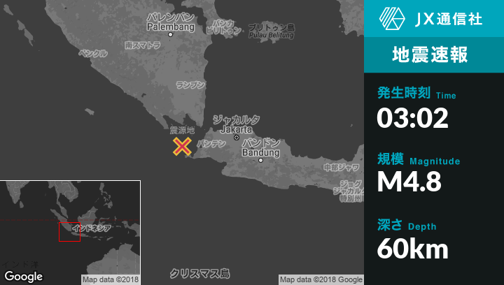 | 震源地 | インドネシアのKarangbolongから西北西64kmの地点 |