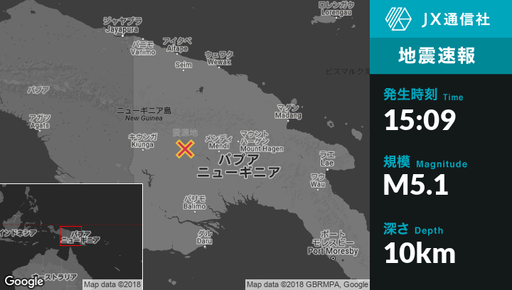 | 震源地 | パプアニューギニアのPorgeraから南西86kmの地点 |