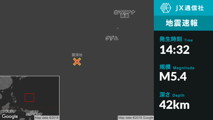 4月18日 14:32頃、ミクロネシアのFaisから北東294kmの地点でM5.4の地震がありました。