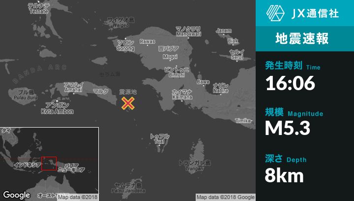 | 震源地 | インドネシアのTualから北西271kmの地点 |