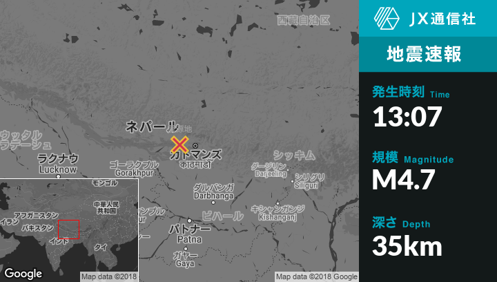 | 震源地 | ネパールのBharatpurから東北東42kmの地点 |