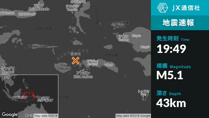 | 震源地 | インドネシアのPiruから西北西70kmの地点 |