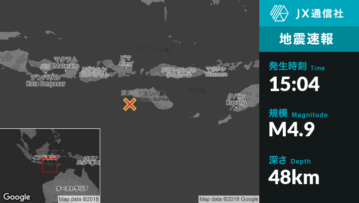 | 震源地 | インドネシアのPanenggoedeから南南西31kmの地点 |