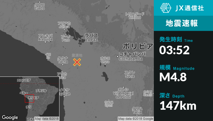 7月05日 03:52頃、チリのPutreから北東65kmの地点でM4.8の地震がありました。