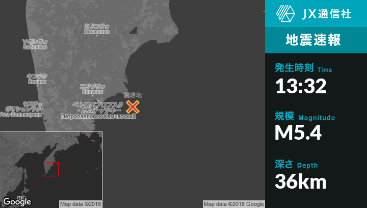 | 震源地 | ロシアのPetropavlovsk-Kamchatskiyから東102kmの地点 |