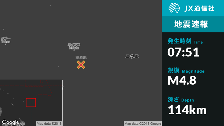 7月07日 07:51頃、トンガのPangaiから東北東95kmの地点でM4.8の地震がありました。