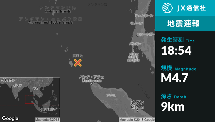 7月08日 18:54頃、インドのMoheanから南東135kmの地点でM4.7の地震がありました。
