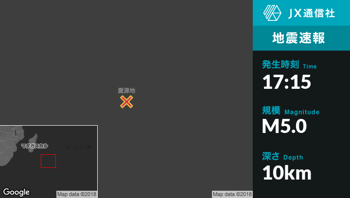 | 震源地 | レユニオン島のSaint-Philippeから南南東1129kmの地点 |