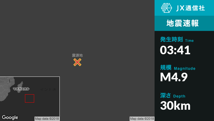 | 震源地 | レユニオン島のSaint-Philippeから南南東1170kmの地点 |
