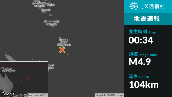 | 震源地 | バヌアツのIsangelから南南東13kmの地点 |
