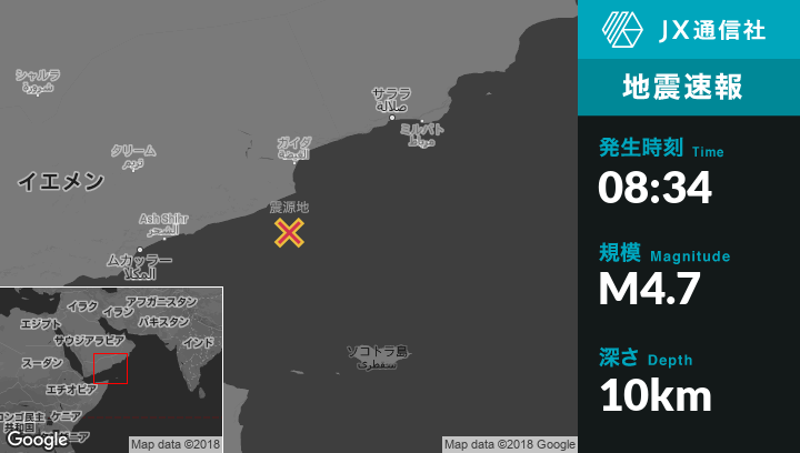 | 震源地 | イエメンのQishnから南東63kmの地点 |