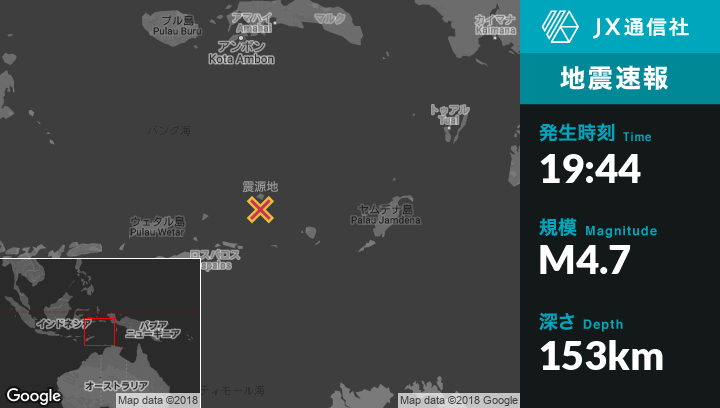 | 震源地 | インドネシアのSaumlakiから西北西307kmの地点 |