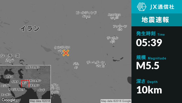 | 震源地 | イランのKermanから東北東36kmの地点 |