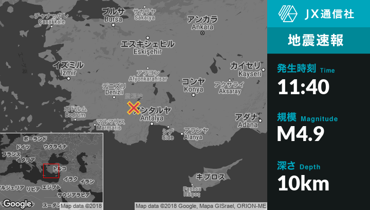 7月23日 11:40頃、トルコのYesilovaから東15kmの地点でM4.9の地震がありました。