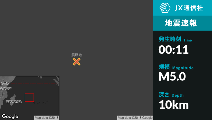 | 震源地 | モーリシャスのPort Mathurinから北東465kmの地点 |