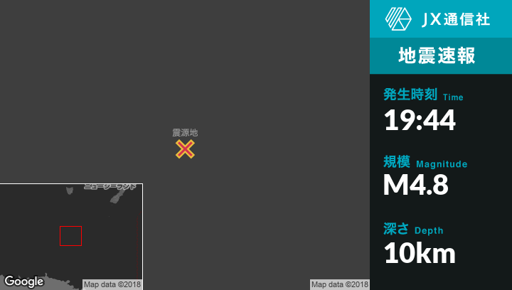 9月08日 19:44頃、オーストラリアのMacquarie Islandから西南西779kmの地点でM4.8の地震がありました。