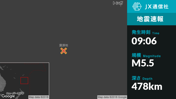 9月09日 09:06頃、フィジーのNdoi Islandから南南西503kmの地点でM5.5の地震がありました。