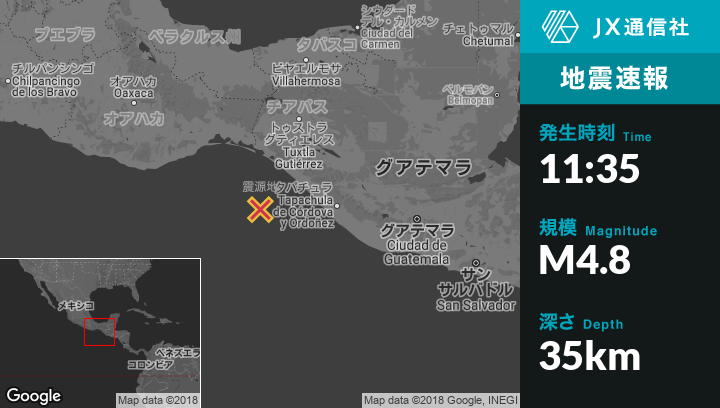 | 震源地 | メキシコのTres Picosから南南西112kmの地点 |