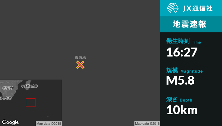 9月18日 16:27頃、フランス南部準州のIle aux Cochonsから北922kmの地点でM5.8の地震がありました。