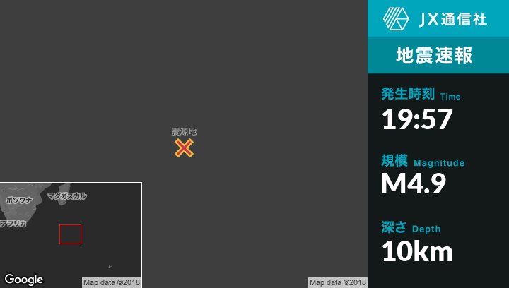 9月18日 19:57頃、フランス南部準州のIle aux Cochonsから北914kmの地点でM4.9の地震がありました。