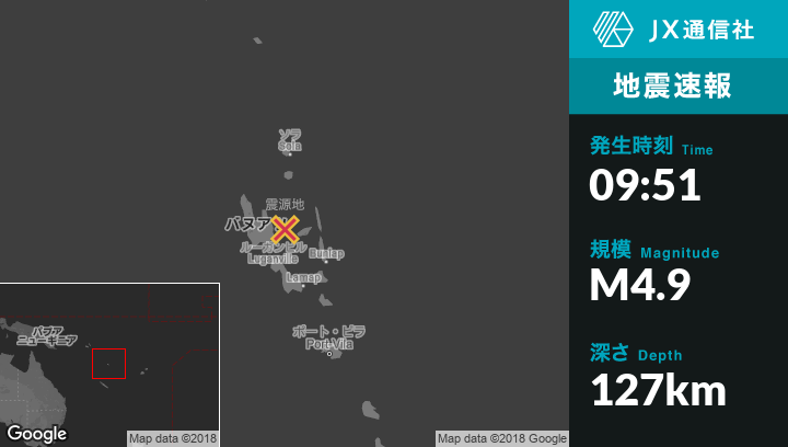 | 震源地 | バヌアツのPort-Olryから東南東44kmの地点 |