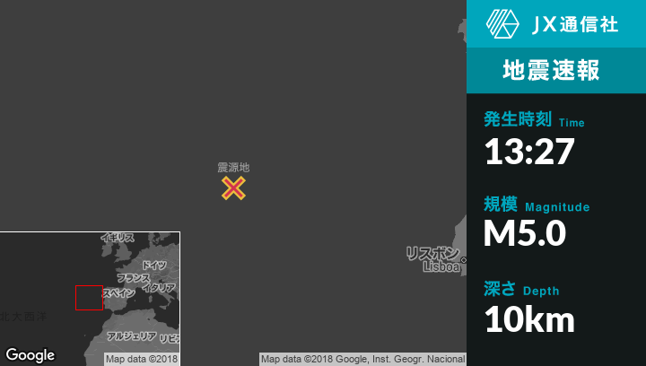 | 震源地 | ポルトガルのPenicheから西北西472kmの地点 |