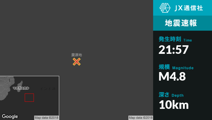 | 震源地 | レユニオン島のSaint-Philippeから南南東1160kmの地点 |