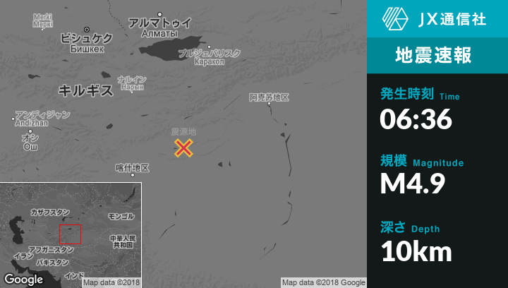 11月04日 06:36頃、中国のArzakから東北東139kmの地点でM4.9の地震がありました。