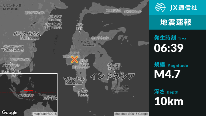 | 震源地 | インドネシアのMamasaから東南東9kmの地点 |
