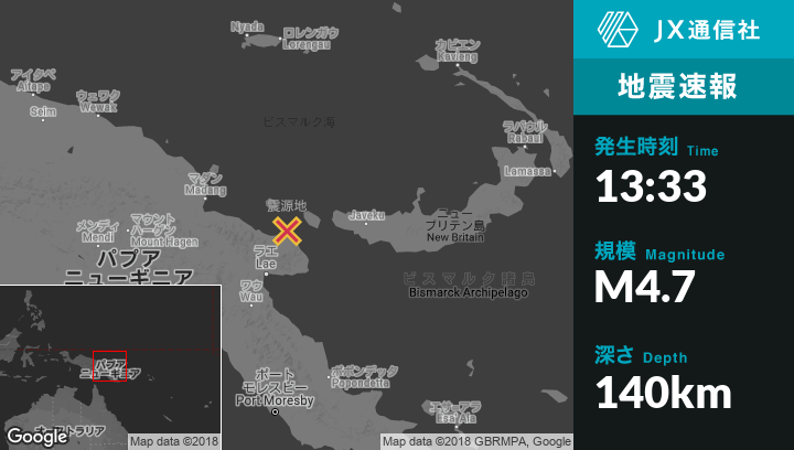 | 震源地 | パプアニューギニアのFinschhafenから北北西107kmの地点 |