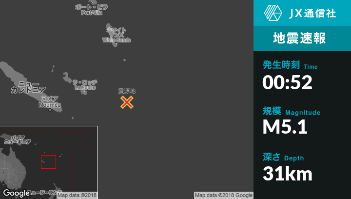 12月18日 00:52頃、ニューカレドニアのTadineから東211kmの地点でM5.1の地震がありました。